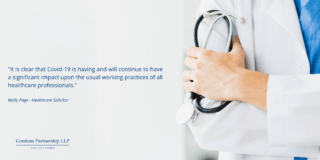 In light of the unprecedented pressure on the NHS and requirement for it to adapt to deal with this pandemic as best it can, the GMC and other healthcare regulatory bodies have issued a statement confirming that they will take into account the restrictions to usual practice faced by healthcare professionals at this difficult time. The Statement confirms that the GMC ‘recognise that in highly challenging circumstances, professionals may need to depart from established procedures in order to care for patients and people using health and social care services.’ It goes on to reassure professionals that: ‘Where a concern is raised about a registered professional, it will always be considered on the specific facts of the case, taking into account the factors relevant to the environment in which the professional is working.’ The Statement points out that doctors must still ensure they comply with the GMC’s regulatory standards to ‘work cooperatively with colleagues to keep people safe, to practise in line with the best available evidence, to recognise and work within the limits of their competence, and to have appropriate indemnity arrangements relevant to their practice’.